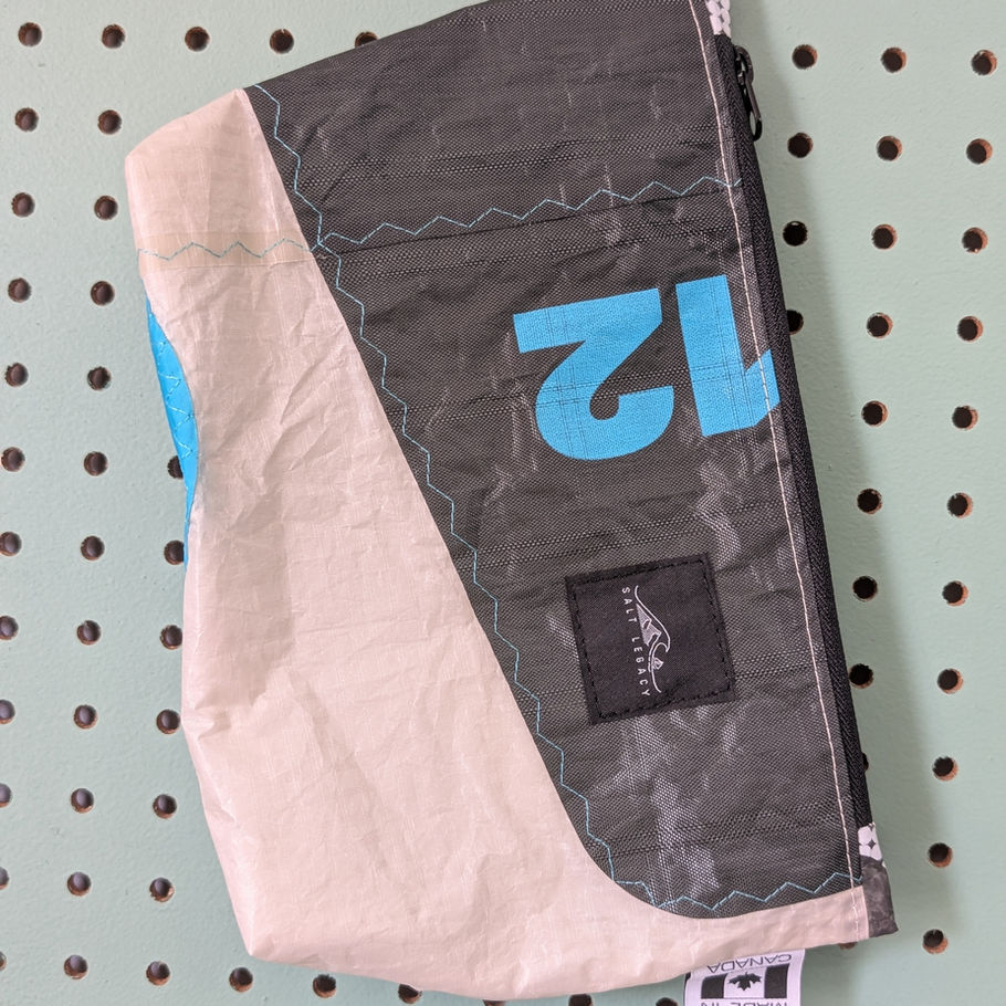 Crafted with upcycled kiteboard kite on the outside and lined with sailcloth on the inside, each bag is durable, lightweight, and completely unique. A YKK zipper keeps your items secure and protected wherever you go.